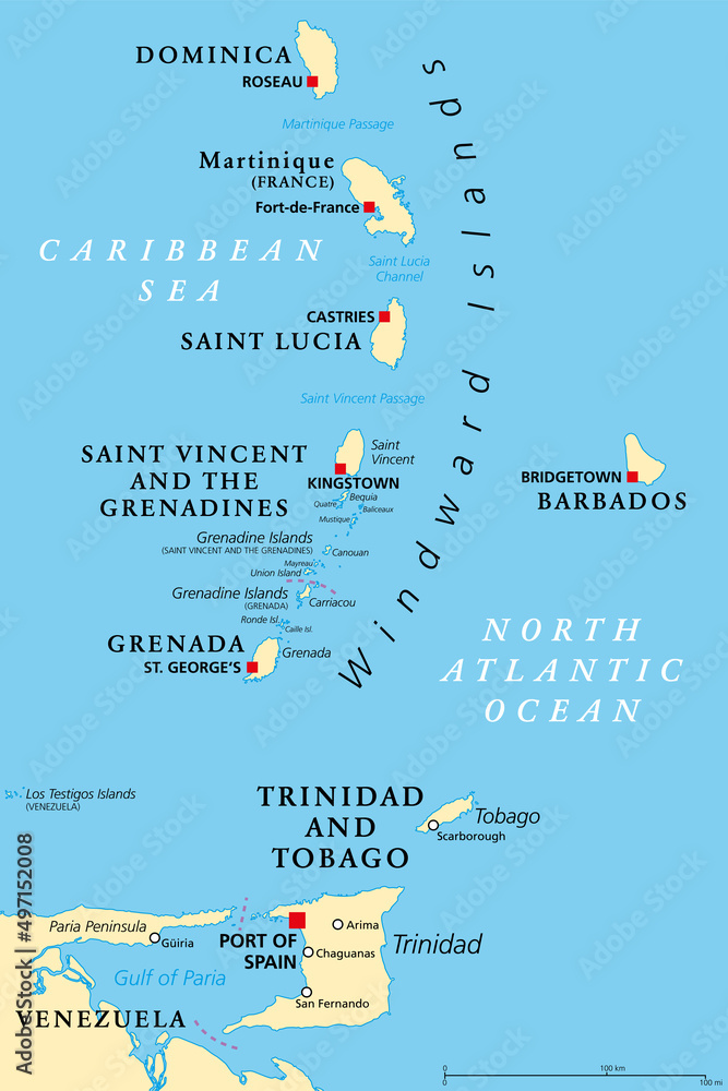 Lesser Antilles Political Map. The Caribbees With Haiti, The